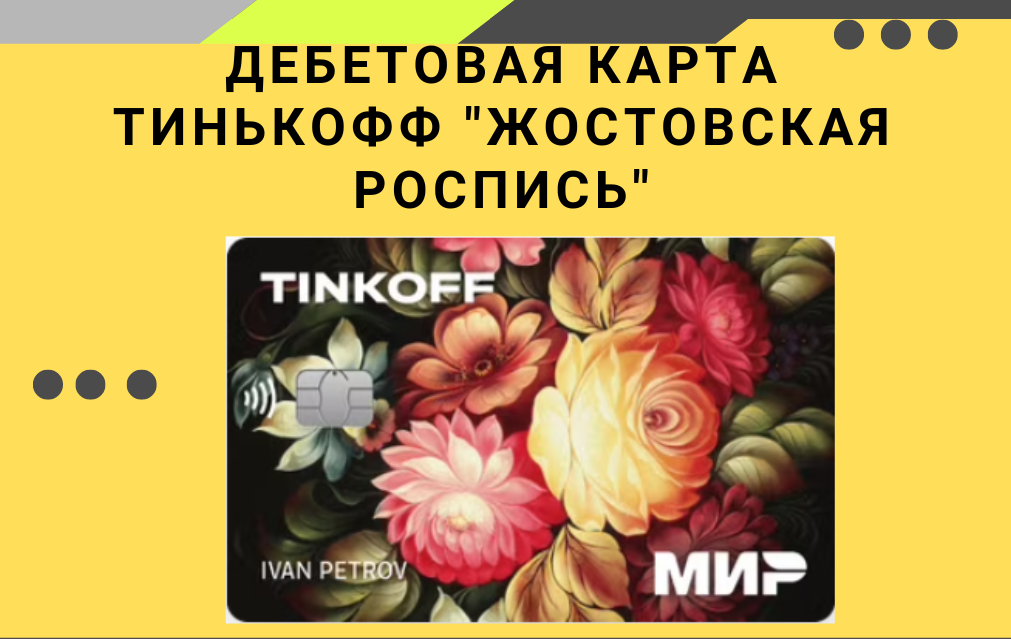 Карта Тинькофф «Жостовская роспись» — дебетовая карта с уникальным дизайном из серии русских народных промыслов. «Жостовская роспись» органично вписывается в стилистику карт «Тинькофф», яркие цветы на черном фоне выглядят очень выразительно. На bankovskie-karty.ru узнайте подробнее о дизайне карты Тинькофф «Жостовская роспись», условия, преимущества и как оформить карту Тинькофф «Жостовская роспись».