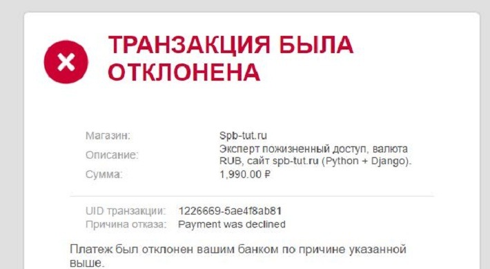 Транзакция отклонена банком выпустившим карту видео